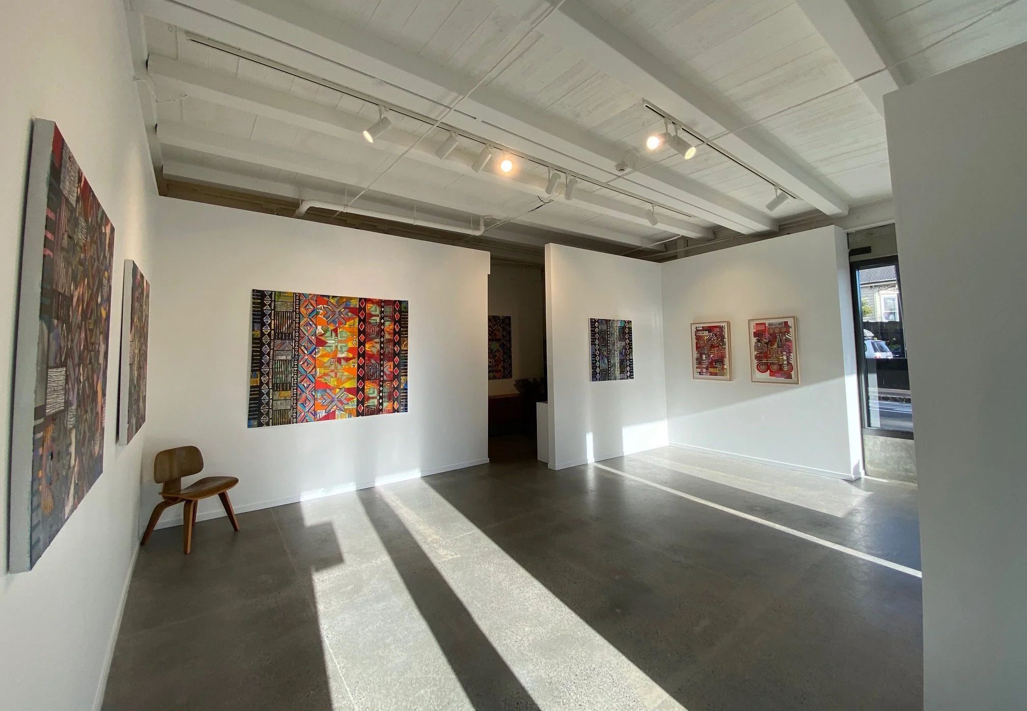 Works in the exhibition include paintings on stretched and unstretched canvas, works on paper and plaited installation pieces.