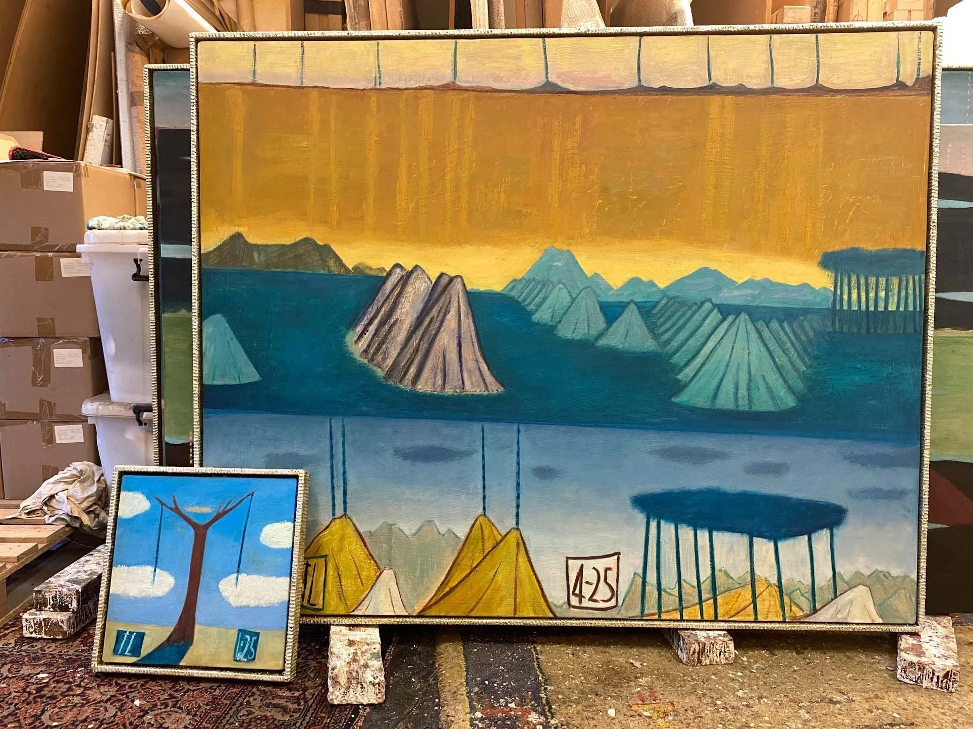 In celebration of Tony Lane’s exhibition in Northern Spain, we are delighted to present a companion exhibition here in Auckland. In these luminous paintings, the light, colour and iconography of Northern Spain are fused with Lane’s lexicon of symbols and the familiar topography of Aotearoa.